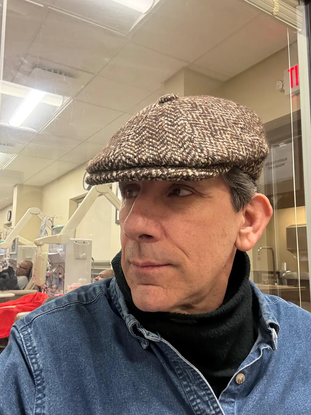 - Classic Newsboy shape with herringbone design