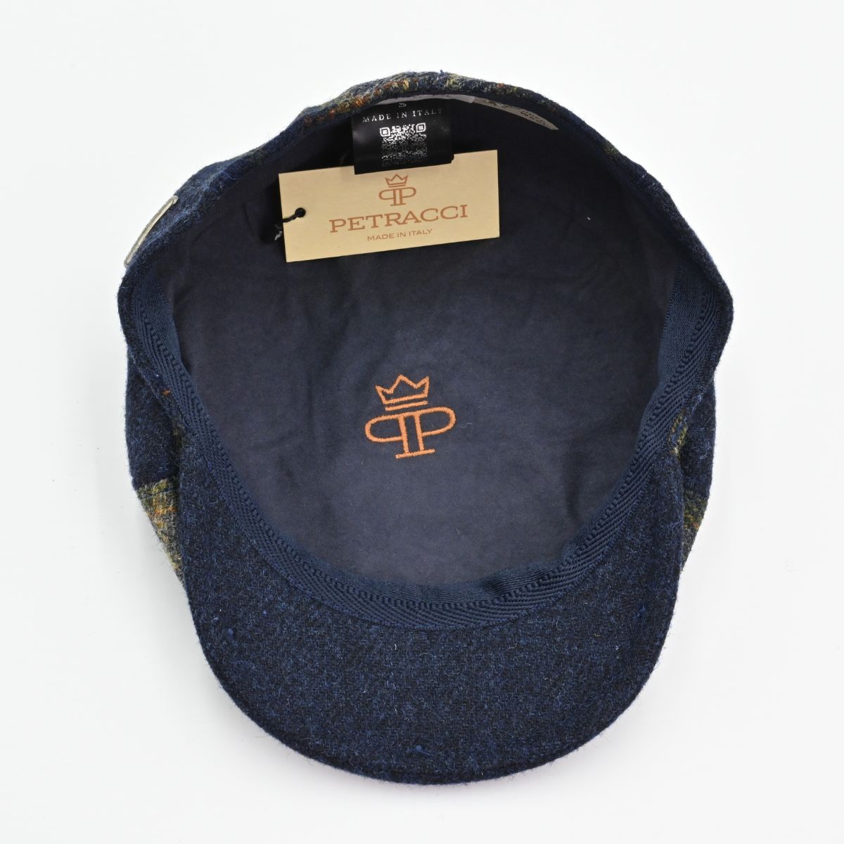 Handcrafted in Italy, the Spicchi Fantasia Newsboy Hat blends timeless craftsmanship with modern flair. Made from 100% premium wool, it features a distinctive patchwork pattern (“spicchi fantasia”) that highlights deep navy and earthy tones — a classic look for cooler seasons. The 100% cotton lining ensures breathable comfort and a soft feel against the skin.